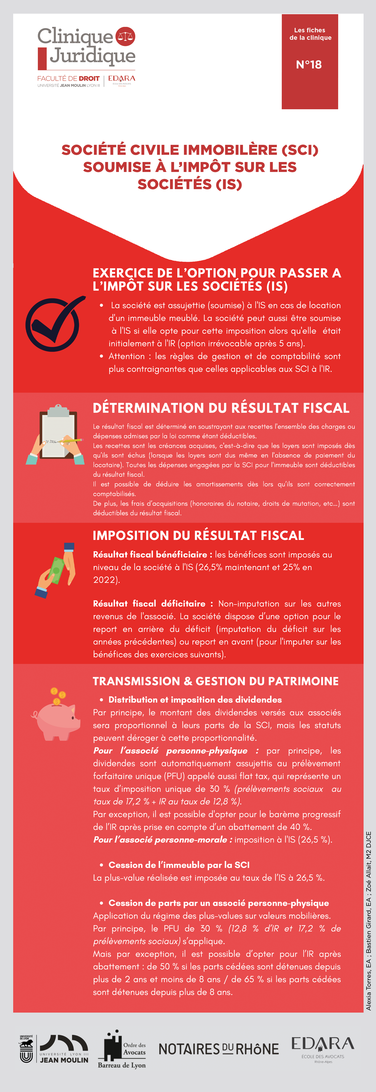 Résultat fiscal bénéficiaire : les bénéfices sont imposés au niveau de la société à l'IS (26,5% maintenant et 25% en