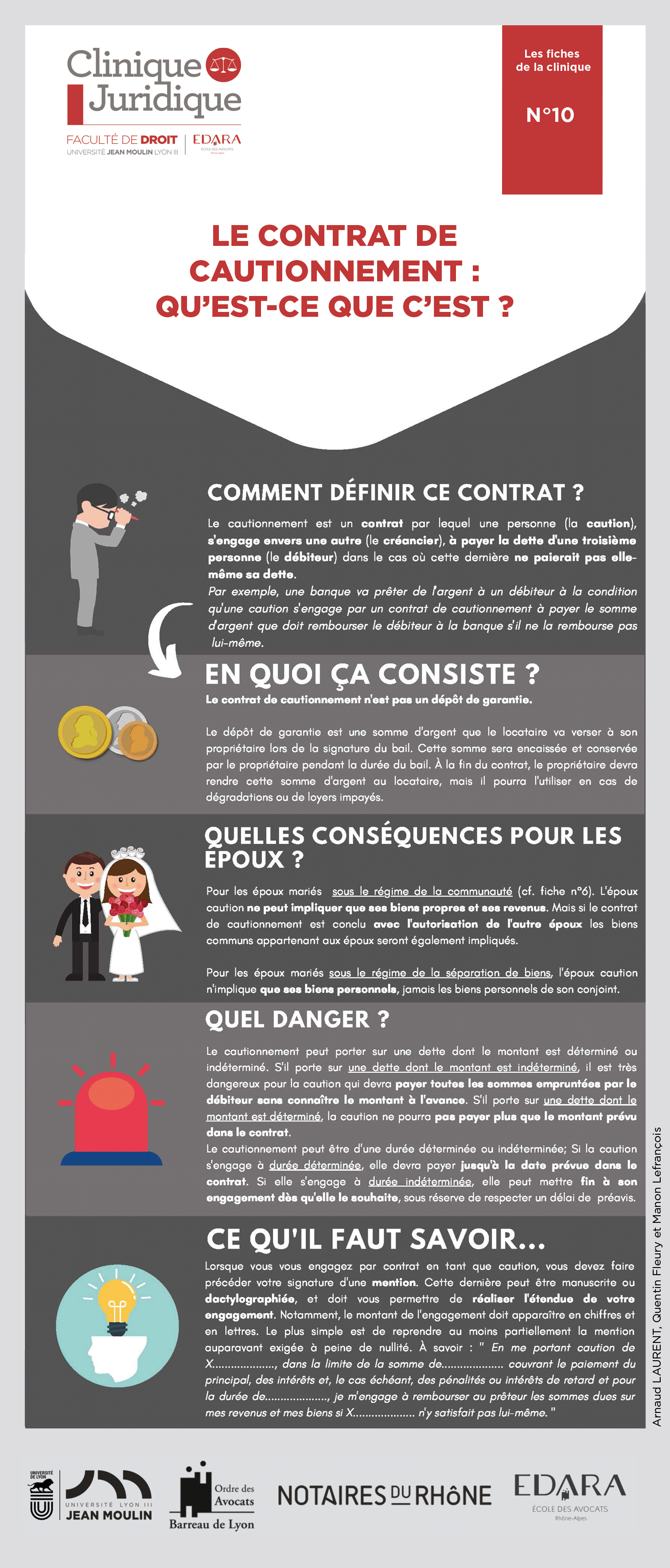 Pour les époux mariés sous le régime de la communauté (cf. fiche n°6). L'époux caution ne peut impliquer que ses biens propres et ses revenus. Mais si le contrat de cautionnement est conclu avec l'autorisation de l'autre époux les biens communs appartenant aux époux seront également impliqués.