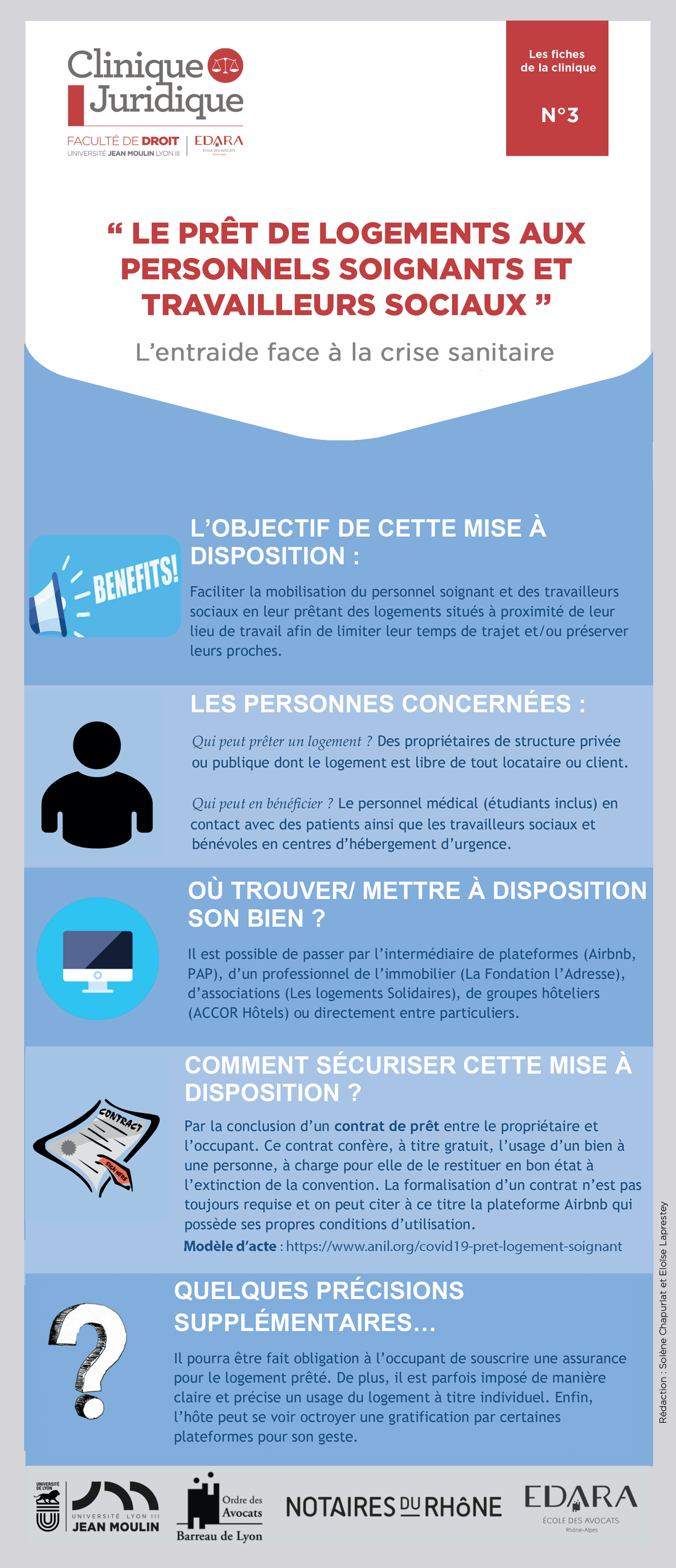 Faciliter la mobilisation du personnel soignant et des travailleurs sociaux en leur prêtant des logements situés à proximité de leur lieu de travail afin de limiter leur temps de trajet et/ou préserver leurs proches.