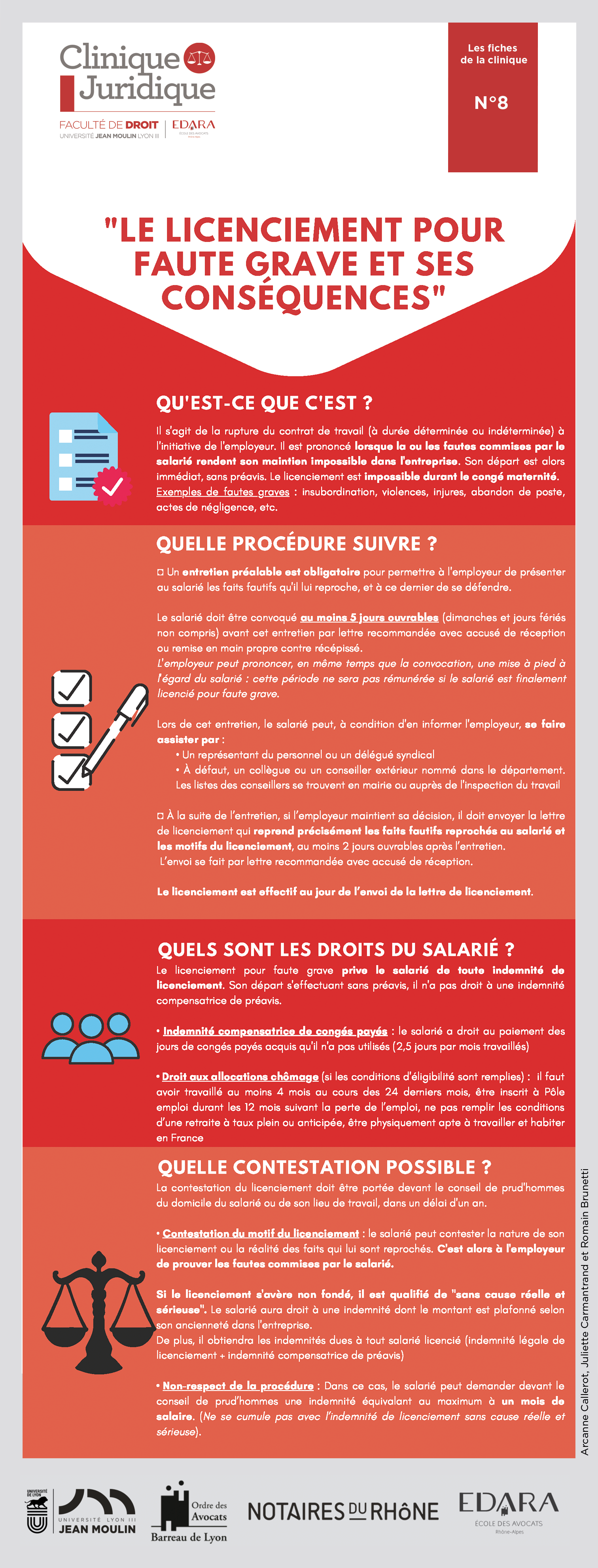 > Télécharger la fiche n°9 - Fiche n°8 - Le licenciement pour faute grave et ses conséquences