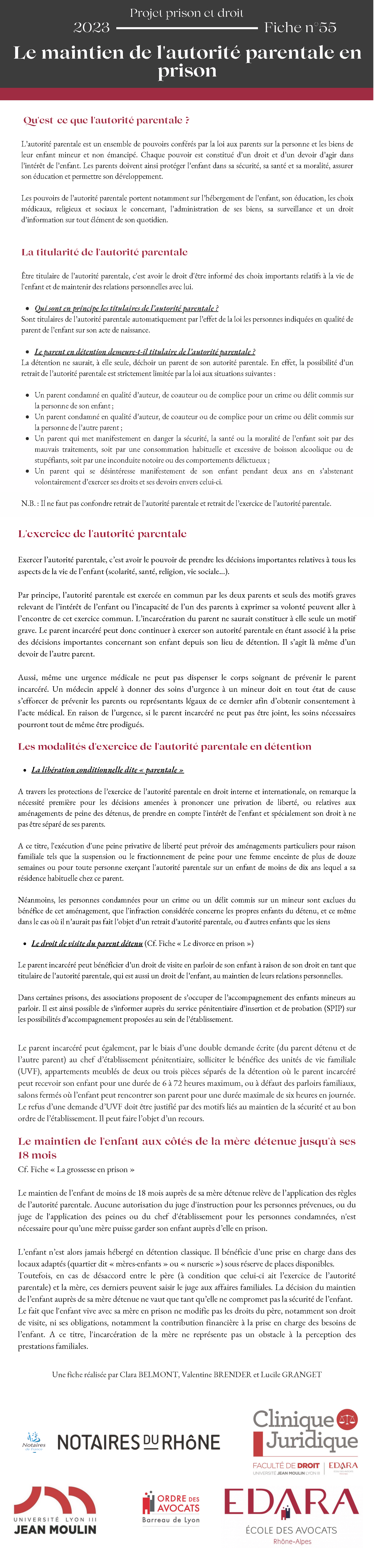 - Fiche n°55 - Le maintien de l'autorité parentale en prison
