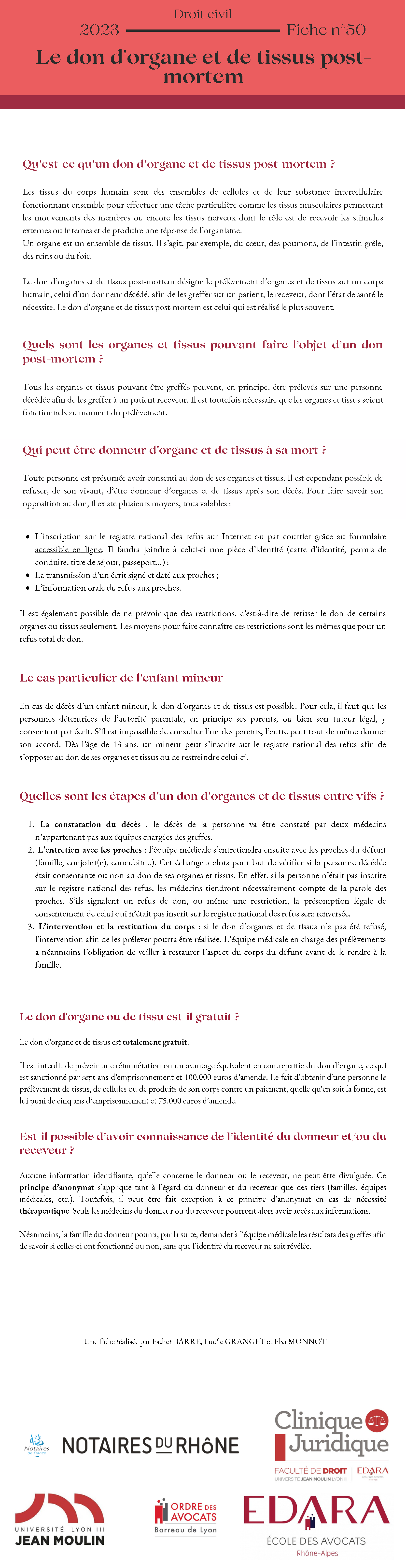 > Télécharger la fiche n°51 - Fiche n°50 - Le don d'organe et de tissus post-mortem