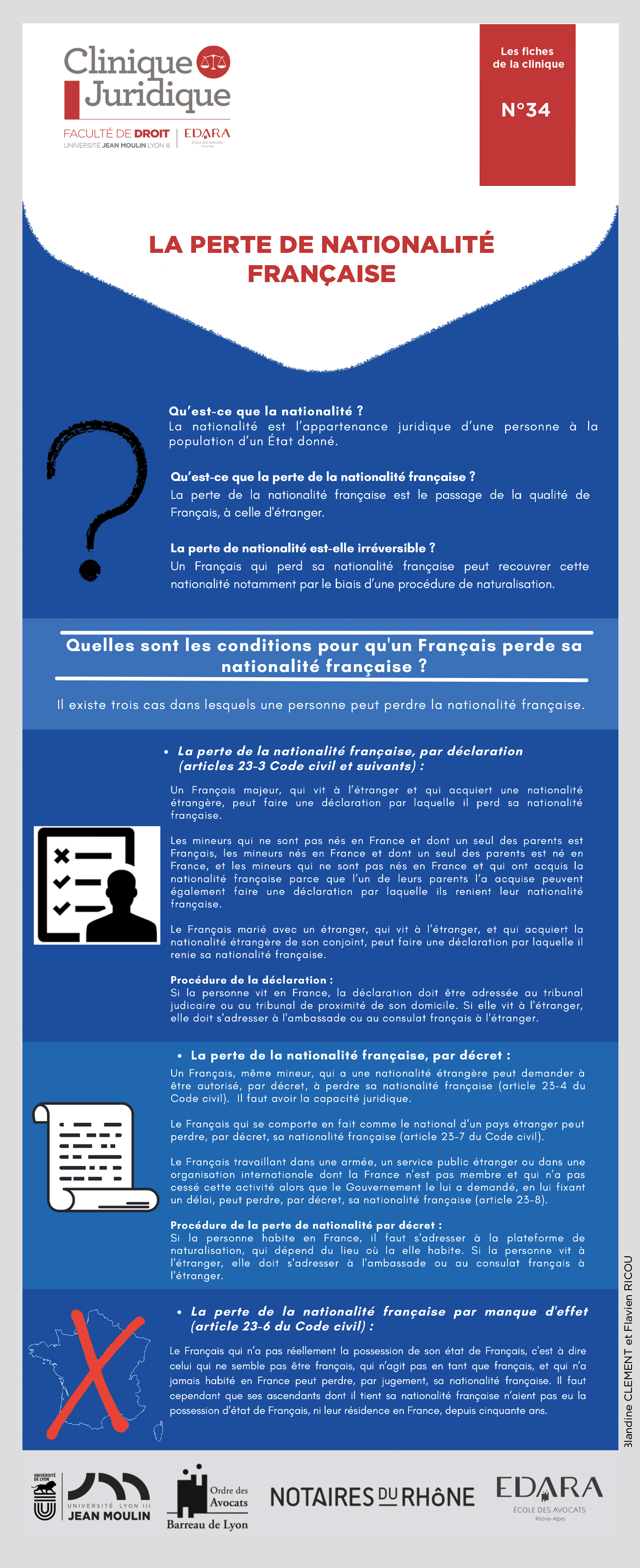 Il existe trois cas dans lesquels une personne peut perdre la nationalité française.