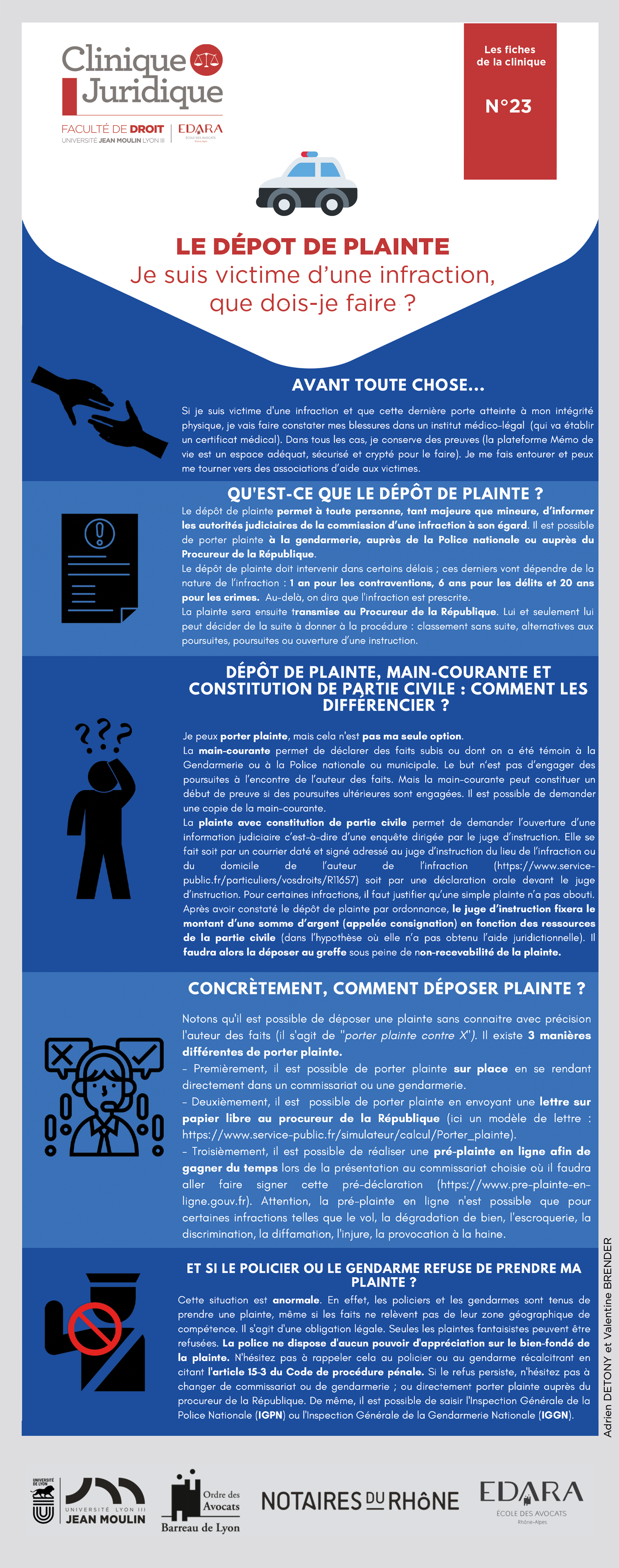 > Télécharger la fiche n°24 - Fiche n°23 - Le dépôt de plainte - Je suis victime d'une infraction. Que dois-je faire ?